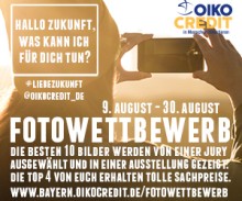 Wie wollen wir als Einzelne, als Gesellschaft, als Weltgemeinschaft heute, morgen und übermorgen leben? Diese Frage bewegt derzeit viele Menschen und Organisationen, auch Oikocredit! Deshalb lädt Oikocredit Menschen dazu ein, ihre Ideen für die Zukunft mit anderen zu teilen - im Rahmen eines Fotowettwerbes "Hallo Zukunft, was kann ich für dich tun?". Dieser startet Freitag 09. August auf Instagram. Teilnehmen am Wettbewerb können alle ab 14 Jahren mit Fotos, die zeigen, wie sie sich die Zukunft vorstellen, eine Zukunft, die nachhaltig, fair, gerecht, sozial, einfach lebenswert ist. Es gibt tolle Sachpreise und die Teilnahme an einer Ausstellung zu gewinnen.